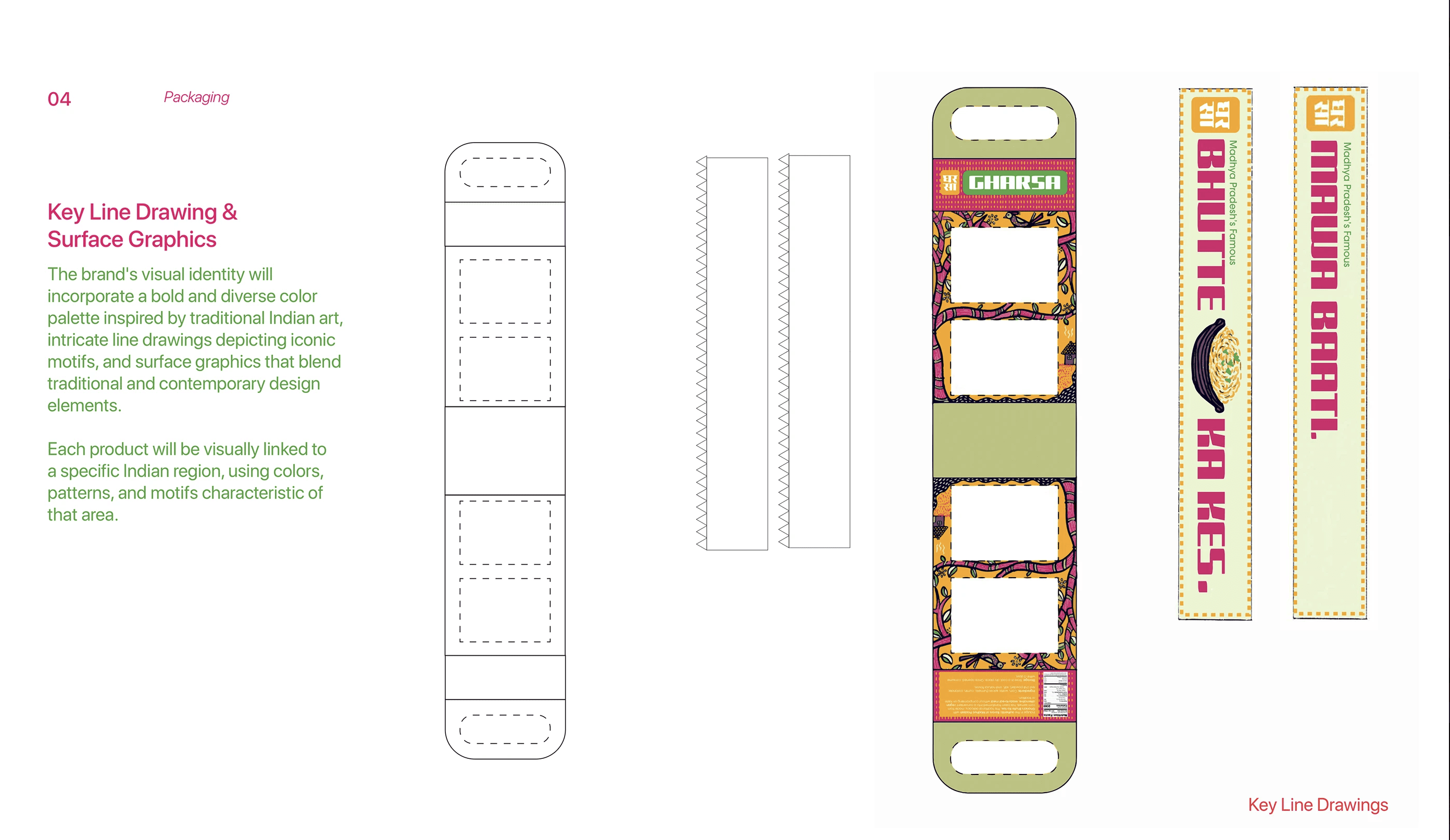 The visual language for Gharsa is built on the idea of celebrating India’s regional food culture through bold, contemporary design. The packaging uses a vibrant, loud colour palette combined with region-specific artforms, ensuring each product not only looks striking but also feels deeply rooted in its place of origin.