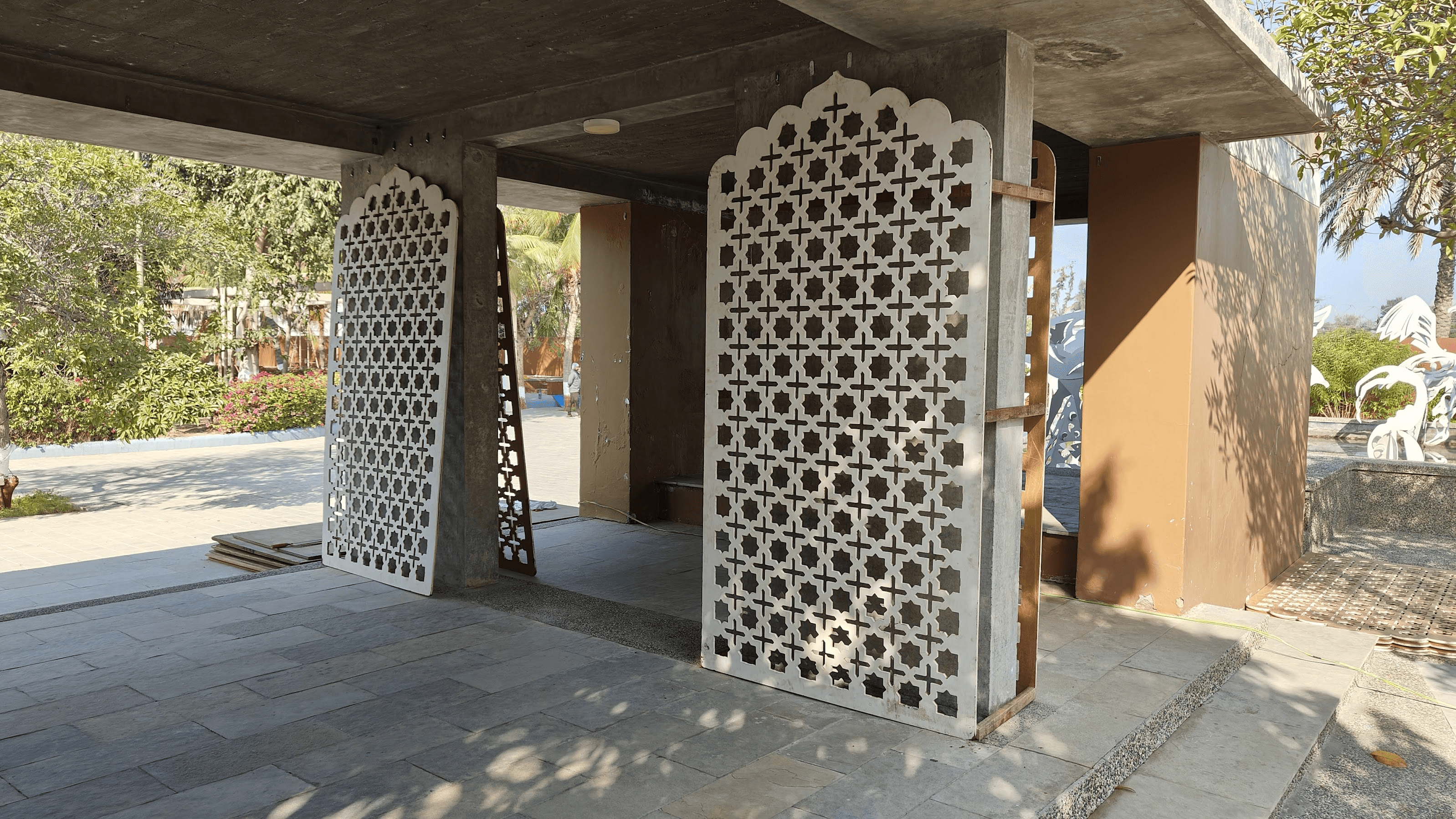 We also created laser-cut jaalis — decorative panels that echoed traditional architectural forms.
