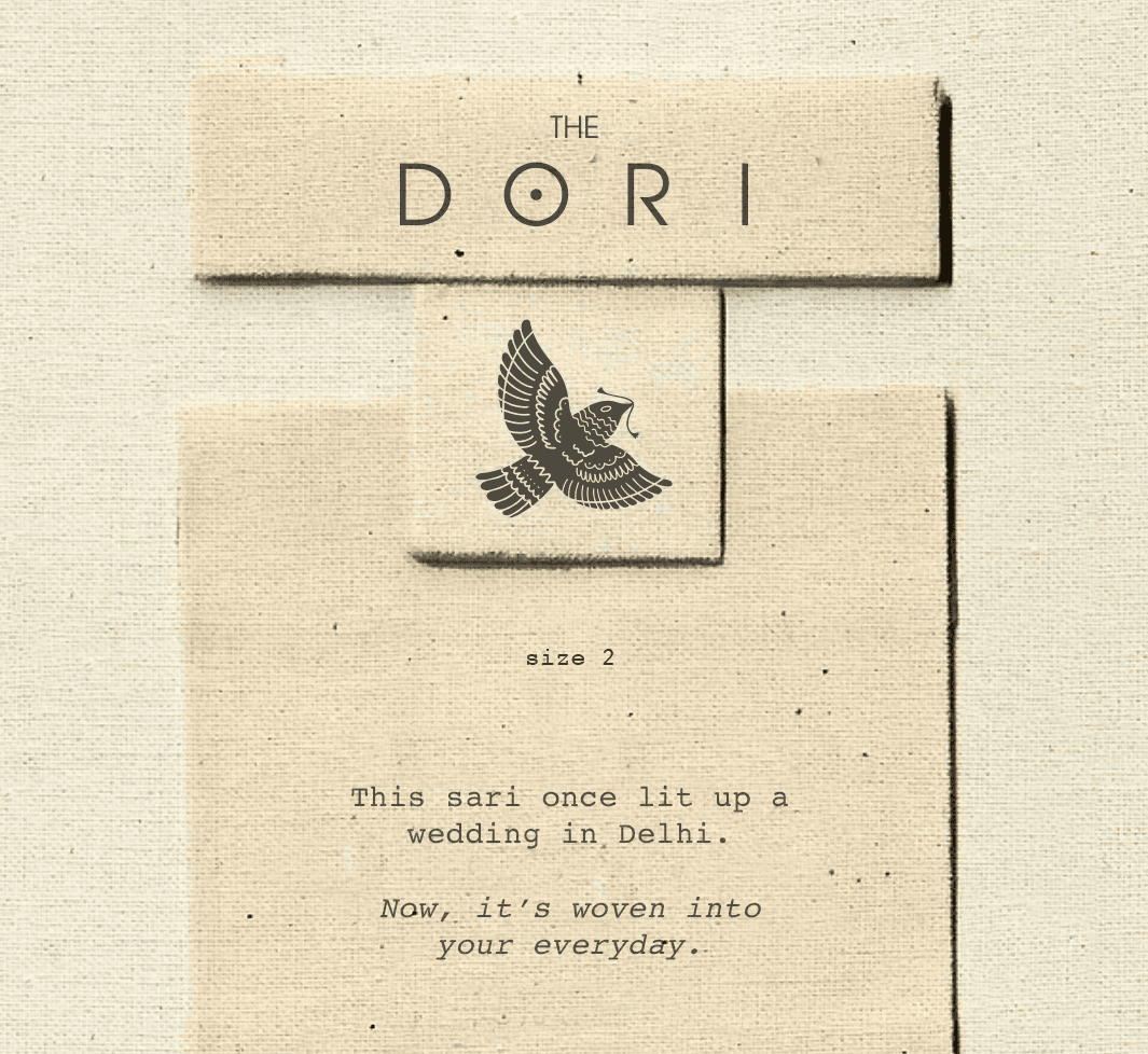 The Dori is a contemporary heritage brand that transforms donated saris into gender-neutral garments. The project involved building a complete identity system that feels rooted, warm, and culturally aware while remaining clean and modern. Through research into craft traditions, diaspora narratives, and sustainable fashion, the brand direction emerged as a balance of heritage and restraint. The final identity features a refined wordmark, a baya bird emblem, and a jharokha inspired frame; symbols of memory, movement, and continuity.